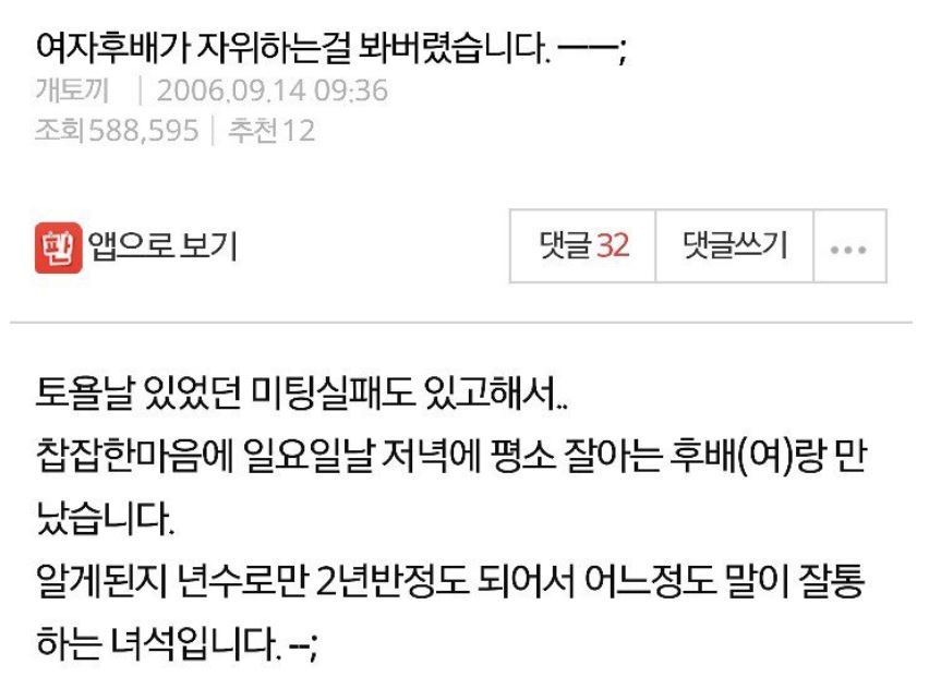 • 여자후배가 자X하는걸 봐 버렸습니다 익명2016.10.01 23:57