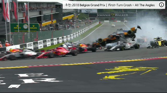 아래는 지난 주말에 있었던 벨기에 GP 사고 장면인데요.