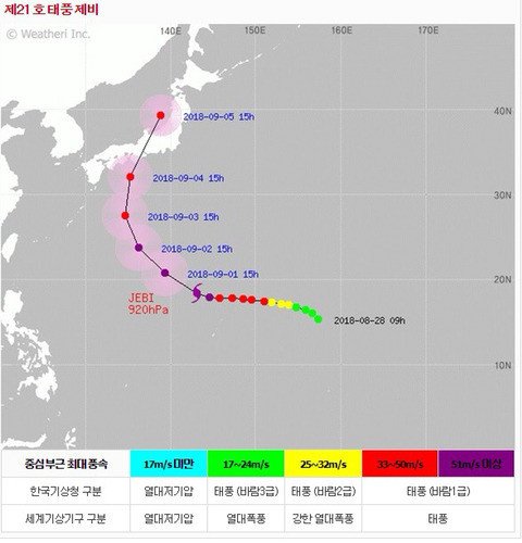 일본기상청 올해 중 가장 큰 태풍으로 예상 중임