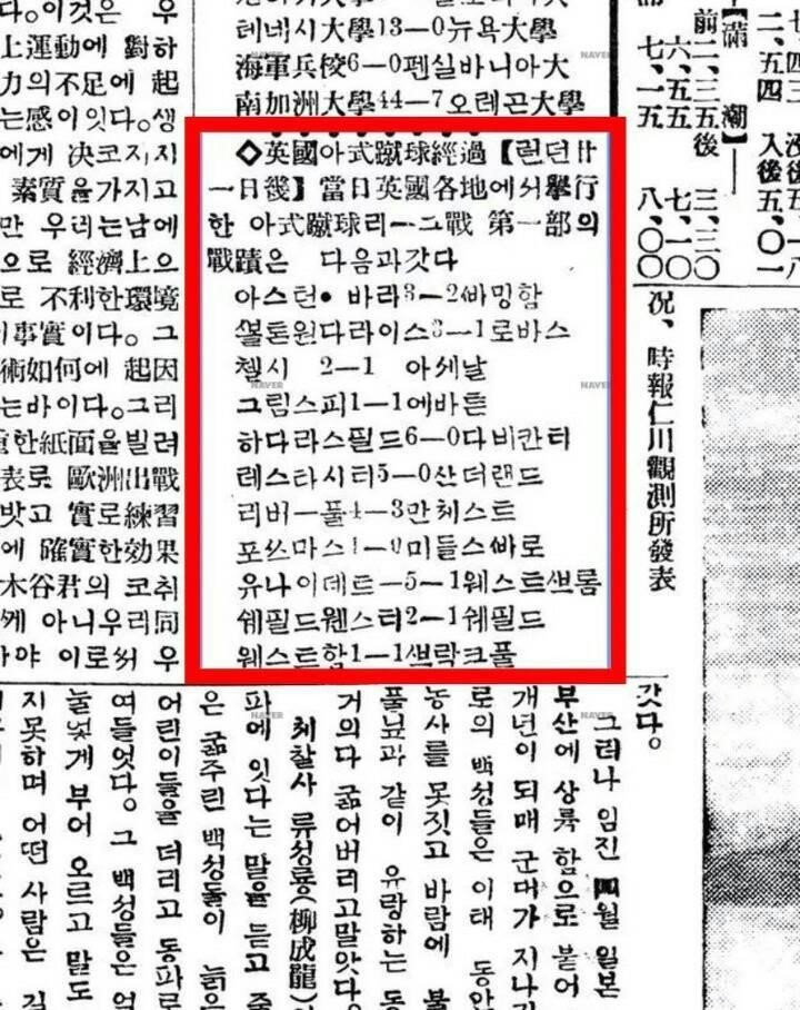 이미 1931년에도 조선에서 프리미어리그에 관심을 가졌네요. 당시 맨유는 2부리그에 있었고 저기 써 있는 유나이데트는 뉴캐슬의 전신이고 만체스터는 맨시티라네요 추천 수 0 비추천 수 0