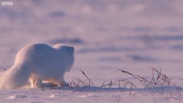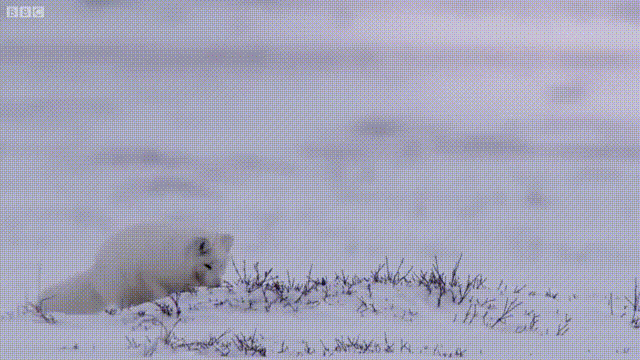 어린 북극여우는 하루에 약100km를 이동하며 먹이를 찾아 헤맵니다.