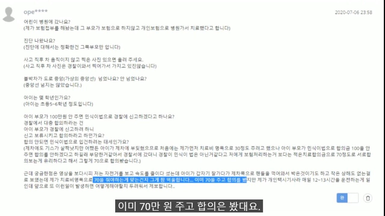 저 자전거타다가 들이박은 애새끼가 70만원 줬다는거지?ㅎㅎ