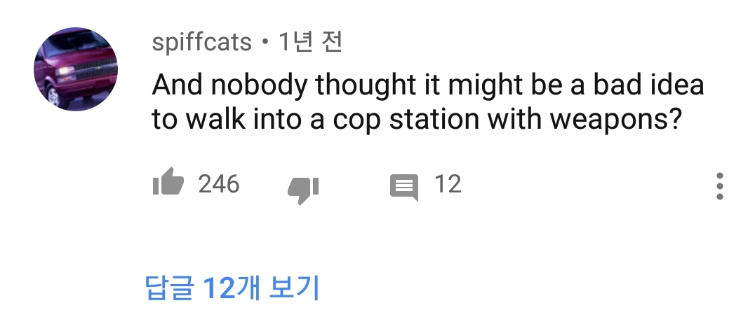 그리고 아무도 경찰서에 총을 들고 들어가는게 나쁜 아이디어란 생각은 안한거야?