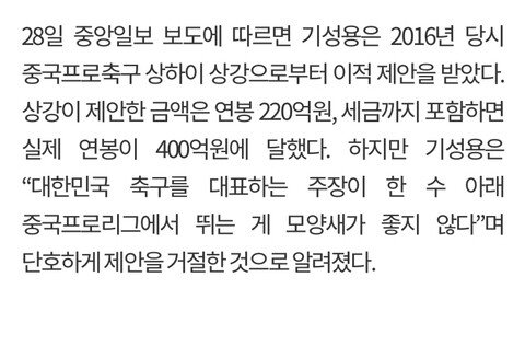 연봉 400억 (세후 220억) 거절..