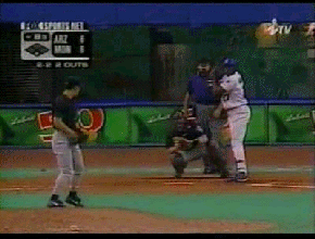 언더핸드인 김병현의 커브볼은 아래에서 위로 솟아오름.