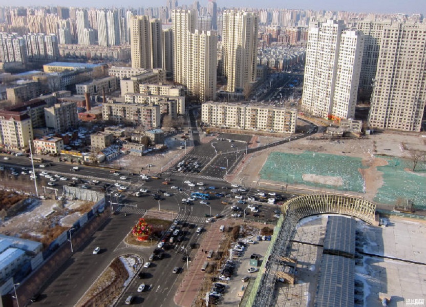 왕복 14차로를 가로막는 하얼빈의 알박기 아파트