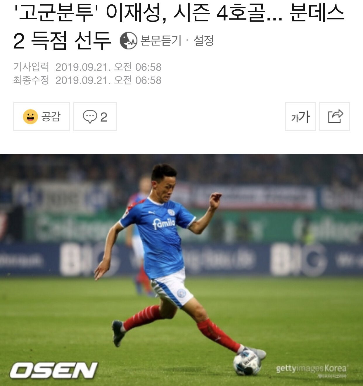 홀슈타인킬 현재 분데스2 18개 팀중 16위