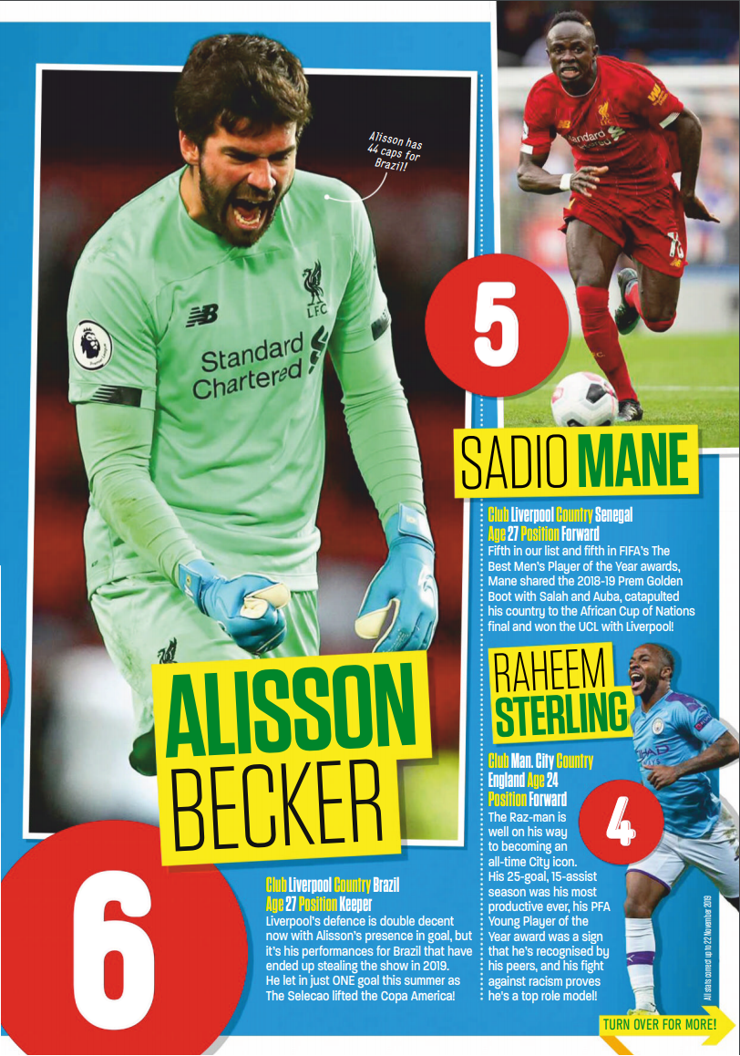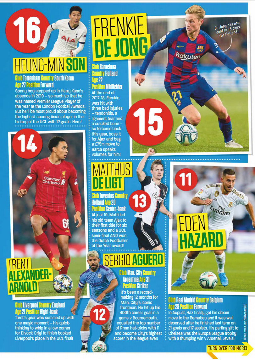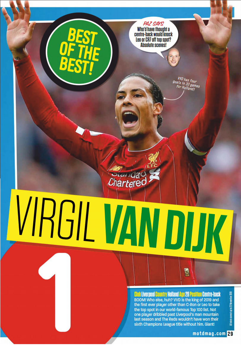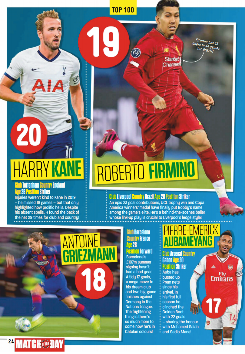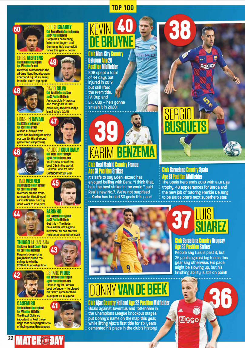 'Match of the day' 영국 프로그램에서 뽑은 2019년 TOP 100