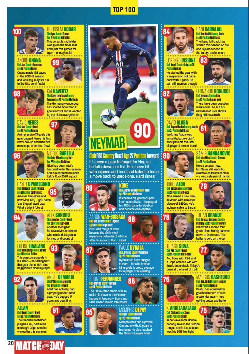 MOTD 2019 최고의 선수 TOP 100